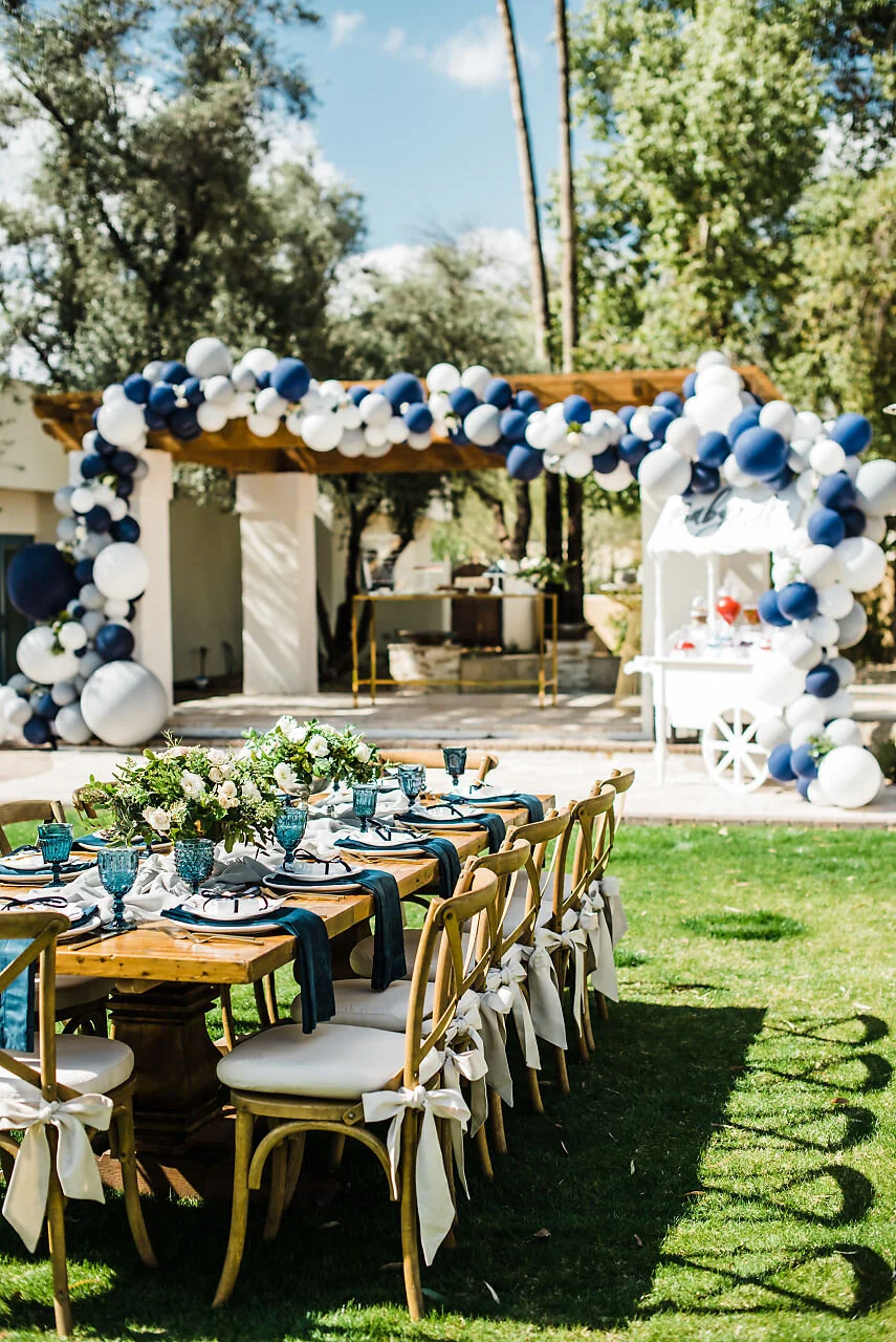 Every detail that goes into your event can be a part of creating an inviting and festive environment. Something as simple as gift wrap or napkins can elevate the entire experience! We were able to incorporate the deep navy blue tones throughout this baby shower in a variety of unique ways. Check out more photos in our gallery.